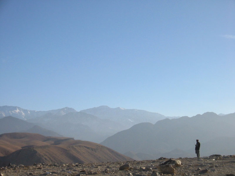 Strangely, one of the guys in the crew that runs it looks like a young Charles Manson, and has a pet monkey. The monkey likes to sit on top of the gun barrell taking in the sights of Tora Bora, which is mostly me and the rest of the team. Several times each day a group of 20 or so people will gather around and just stare at us for hours on end. I guess there isn't much else for them to do. Afghanistan has no economy beyond drugs and smuggling. The fields have for the most part turned to dust after several years of drought. Whatever advancement people were beginning to reach for was decimated by the strict rules of the Taliban. So, the stand around and stare at the westerners. Some of the braver ones try to mooch phone calls off of our satellite phones. For all the guidebooks may say about Afghan hospitality, I'm finding a lot of them to be greedy and rude.