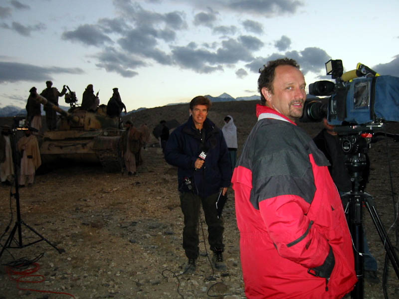 Another little tidbit for you. Here is the story of what is becomming the most famous tank in the world. It has been in the background of just about every live shot that we and Geraldo have done from here. It's an old T-54, a Soviet bloc piece of armour. During the Gulf War, the Mujahideen had sent several hundred fighters to help liberate Kuwait. As a thank you, the Kuwaitis gave the Mujas a few hundred peices of captured Iraqi equipment. The tank in our liveshot is one of them.
