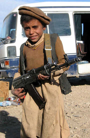 It is a long, bumpy ride. I thought the tracks I made in Africa were rough, but they are superhighways compared to the "road" to Tora Bora. Along the way we pass through small farms being plowed with ox teams, goats and sheep grazing the arid plains, people digging crude irrigation ditches. This, I am told, is the part of Afghanistan that is better off. Children work on the road with shovels and pick axes, ostensibly filling potholes and smothing ruts. They hold out their hands for a gratuity for this work they do on the dirt road. There is nothing else for them to do. Will these same children soon put down their shovel and pick up a machine gun for the same reason: there is nothing to do?