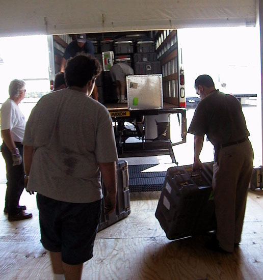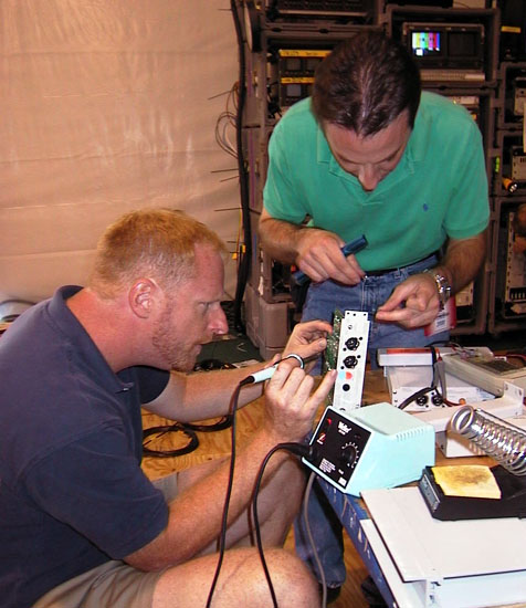 July 12, 2000 - A whole week has gone by and it feels like we've been here a lot longer! It's not because things are going bad, but because of how much progress we are making! We have cables run to all the places in the arena that we need them run, our new digital satellite transmission gear is working great, and the workspace is starting to look more like a television station and less like a storage room!