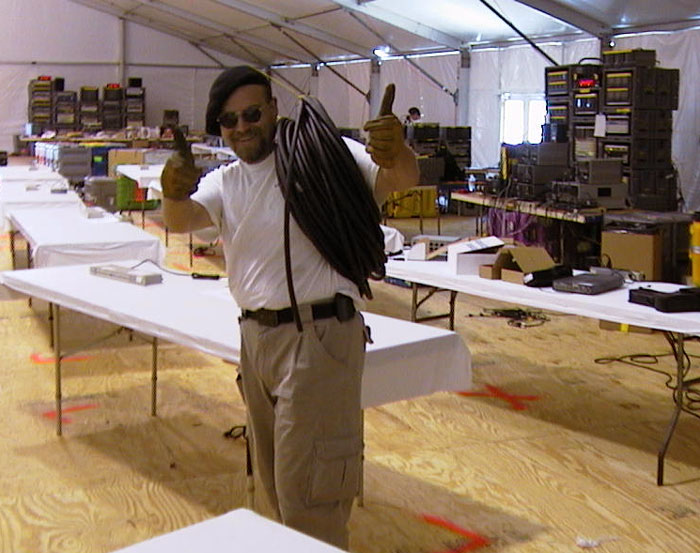 While it feels like we will soon run out of work, that's a false hope. Once we get done setting up in the tent, we need to build all of our studios, camera areas, and radio systems inside the arena. And once that's done, the production truck shows up and needs to be connected to everything. And once that's done, it all needs to be "faxed out" to make sure every cable it properly connected and working. This is why we are here a month before showtime!