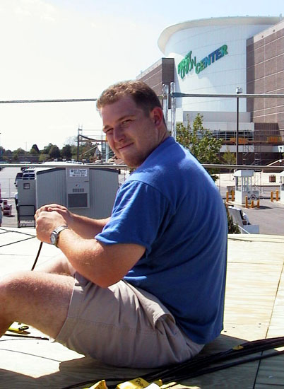 July 08, 2000 - A real good push today. We were short a few folks who went home for the weekend, but made up for it with a busy day. First, we layed out all the cable that will be pulled into the arena, labeled and prepped it. Just between the 5 networks, BellAtlantic is estimating they will pull 1.9 MILLION feet of cable! That's enough cable to run from here to DC and back again! And that's just for the five major networks!