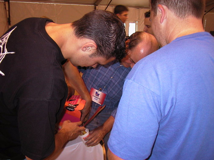 We are set up in a very, very large tent in the parking lot of the First Union Center just outside of Philadelphia. We are already refering to it as the "FU Center." The reasons for that moniker will be kept to ourselves, for the time being!