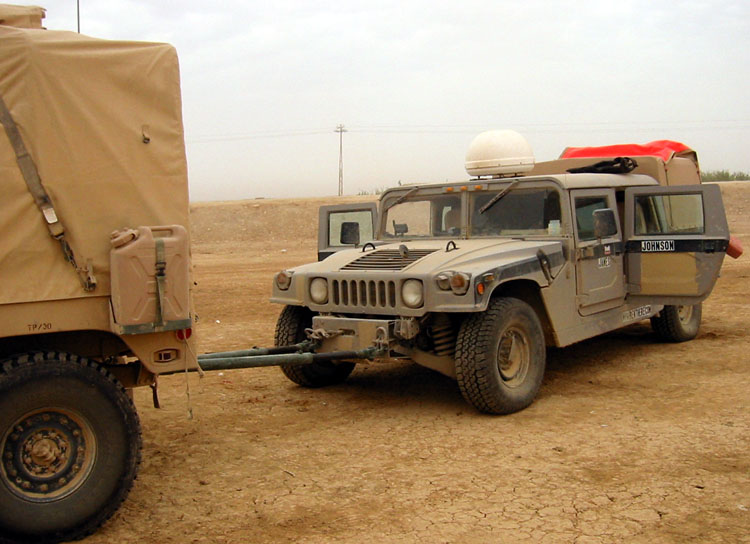 the hummer getting towed by the JAG guys |