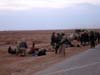 Six hours into the desert we stop at our first fueling point. Greg, Mal, and I have been transmitting live via videophone for all of it. New York is ecstatic about our pictures - a blurry, blocky shot of the APC along side of us.