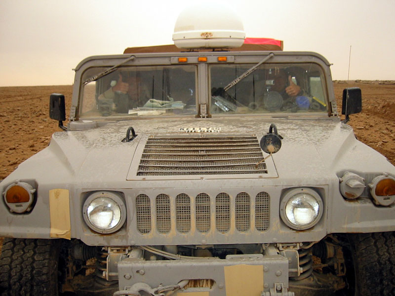It is a minor miracle that the hummer got us as far as it did. No worries. We'll just get a tow to the next checkpoint. Mal will spend the day with Col. Perkins in the command track shooting the story. Greg and I will ride in the hummer as it's towed to the next checkpoint, where we expect to be for a while. We'll set up the dish there, and the mechanics will start working on the hummer.