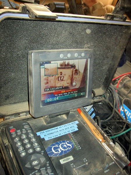 Our gear working again and the weather turning our way, we hope for good days ahead. Mal and Greg head off to An Najaf to cover some action going on there. I stay behind to keep cleaning the gear and set up the satellite gear for their return. Hopefully they wil be back before dark so we can feed out their material.