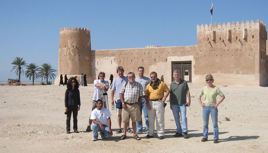 We were under the impression that Al Zubara was an old fort, near a much older city, that had been built to defend Qatar from the British, and later the Bahrainis. After a few wrong turns, and a stop to chat with a camel herder, we arrived at the fort of Al Zubara. The fort commands a long, flat beachline at the north-west tip of Qatar. Climbing its ramparts, and looking through the gun holes, I immagined the enemy storming the beachhead, swarming towards the fort. Inside some of the rooms are a crude sort of museum. A few coins, a few broken pots, a few pictures of the fort being built...